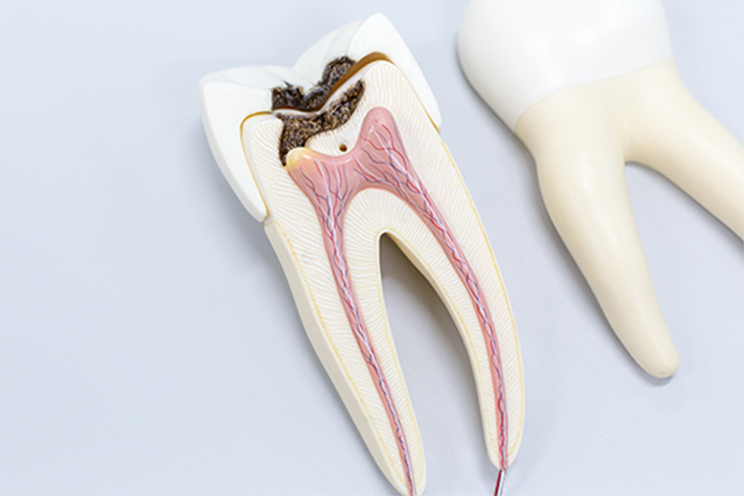 歯の内部には、神経や血管が集まった歯髄という組織があります。虫歯が歯髄にまで達すると、強い痛みや腫れが起こり、一般的な虫歯治療では対応できないため抜歯をすすめられるケースもあるのです。