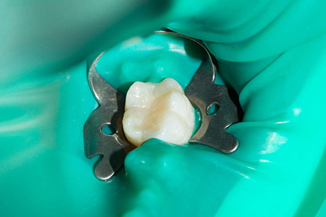 ゴム製のシートを使って、治療する歯だけを露出させます。これにより、患部に細菌を含む唾液などが入り込むことを防げます。また、治療する歯以外をシートで覆っているため、消毒で使う薬液がお口の中に入ってしまうような心配もありません。そのほか、頬・舌・唇に器具が当たって怪我をしたり、お口の中に小さな器具が落下したりするのも防止できます。